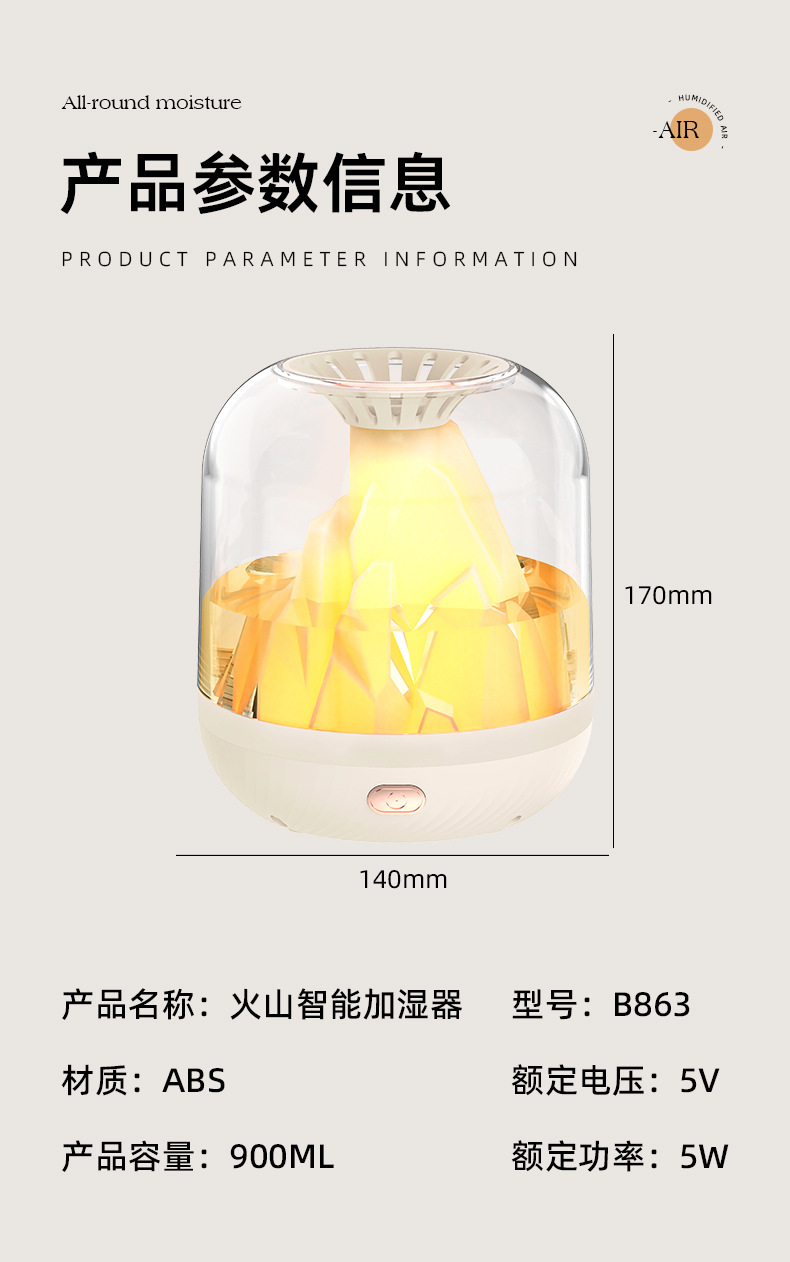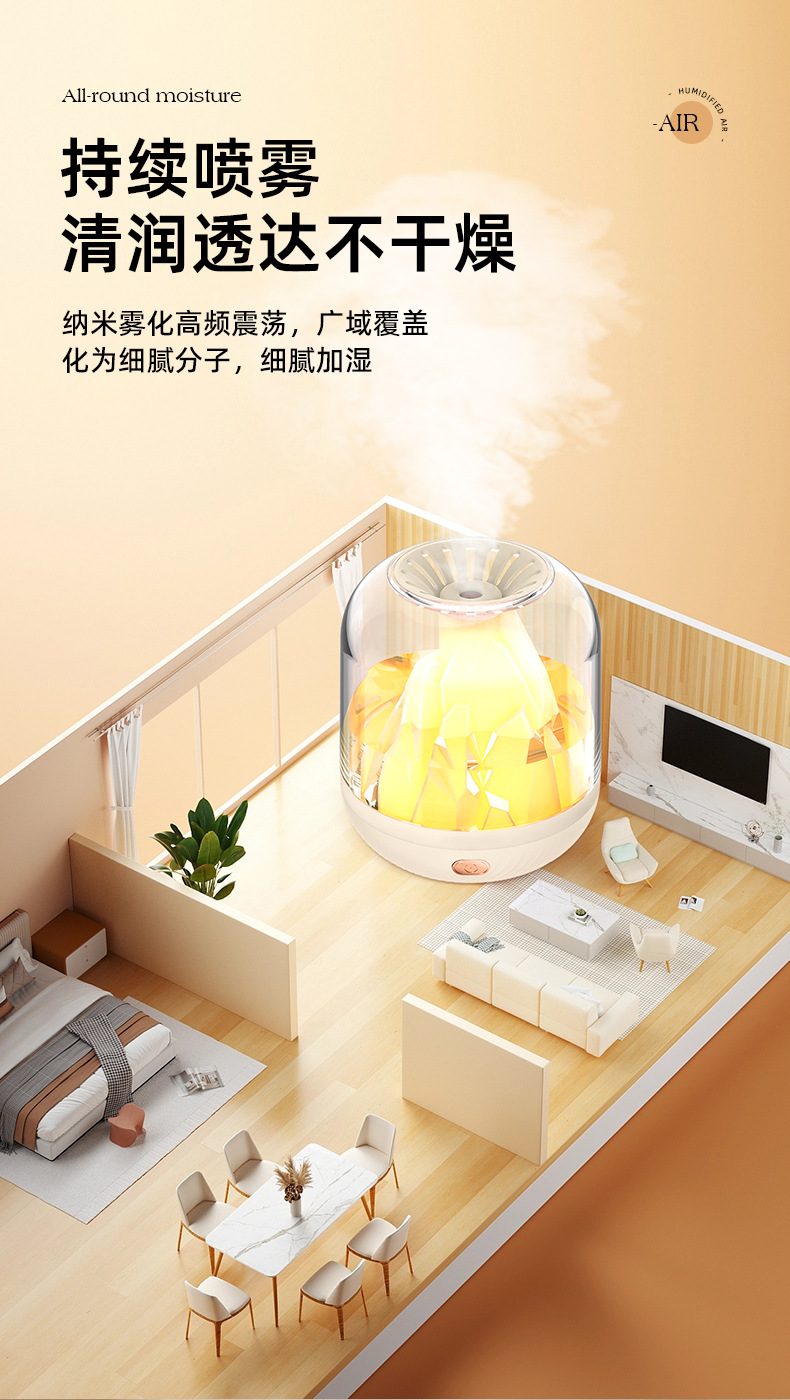 Volcano intelligent humidifier [Charging model] | Colorful crystal humidifier 【400ML】 | Colorful Crystal Humidifier 【1000ML】